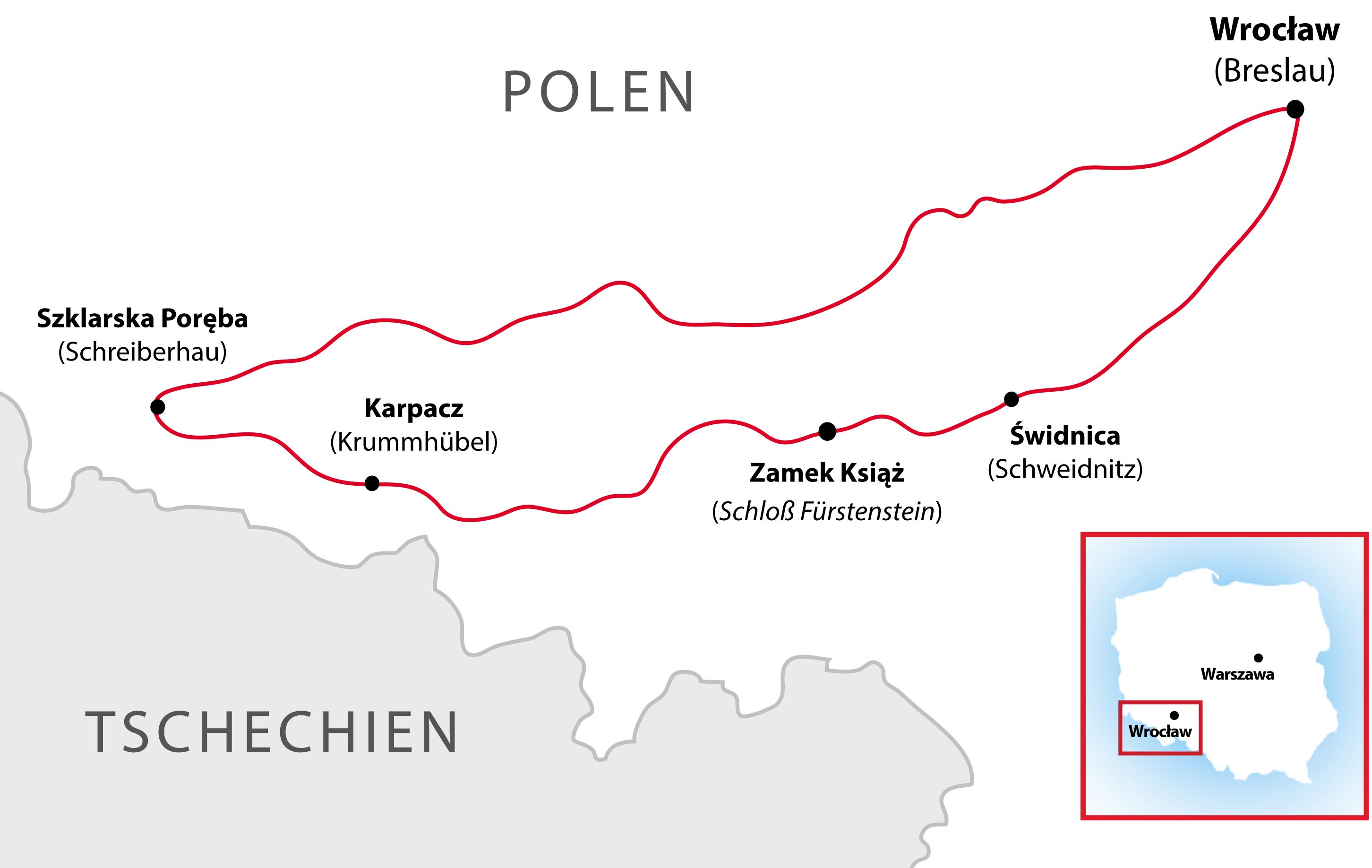 Dieses Jahr bieten wir neue Wandertour im Riesengebirge an. Die Tour beginnt im historischen Wrocław / Breslau und führt durch die interessantesten Winkel Niederschlesien. Andere Hohepunkte der Tour sind - Zamek Książ / Schloß Fürstenstein, Friedenskirche in Świdnica/ Sweidnitz und der höchste Berg des Riesengebirges- Schneekope ( 1603 m ) auch die Krone des Riesengebirges genannt. Ausgangspunkte für unsere Wandertouren sind die beliebten Orte Szklarska Poręba / Schreiberhau und Karpacz / Krummhübel. Gut entwickelte Infrastruktur, Atemberaubende Wanderwege, malerisch gelegene Berghütten ziehen viele Touristen an. Wir freuen uns auf Ihren Besuch im Riesengebirge.